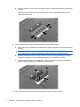 Přidání nebo výměna paměťového modulu ve slotu pro rozšiřující paměťový modul Zásuvka rozšiřujícího modulu paměti je uložena nad zásuvkou primárního modulu paměti. Postup přidání paměťového modulu do zásuvky rozšiřujícího paměťového modulu nebo jeho výměna: 1. Uložte svou práci. 2. Vypněte počítač a sklopte displej. Pokud si nejste jisti, zda je počítač vypnutý nebo v režimu spánku, zapněte jej stisknutím tlačítka napájení. Potom počítač vypněte prostřednictvím nabídky operačního systému. 3.