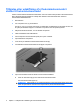 Tilføjelse eller udskiftning af et hukommelsesmodul i slotten til hukommelsesmodul Slotten til hukommelsesudvidelsesmodulet findes ovenover slotten til det primære hukommelsesmodul Benyt følgende fremgangsmåde for at tilføje eller udskifte et hukommelsesmodul i slotten til hukommelsesudvidelsesmodul: 1. Gem dataene. 2. Luk computeren ned, og luk skærmen. Hvis du er i tvivl om, hvorvidt computeren er slukket eller i dvaletilstand, kan du tænde for den ved at trykke på tænd/sluk-knappen.