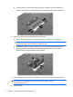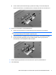13. Fest skruen i dekselet til minnemodulrommet (3). 14. Sett på plass batteriet. 15. Snu datamaskinen slik at høyre side vender opp, og koble til igjen ekstern strøm og eksterne enheter. 16. Slå på datamaskinen.