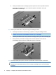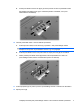 1 Dodajanje ali zamenjava pomnilniških modulov Računalnik ima en prostor za pomnilniški modul, najdete ga na dnu računalnika. Spominsko kapaciteto računalnika nadgradimo z dodajanjem pomnilniških modulov v nezasedene reže oziroma z nadgradnjo obstoječega modula, nameščenega v primarni reži za pomnilniške module. OPOZORILO! Zaradi omejitve tveganja električnega šoka in poškodb opreme pred nameščanjem pomnilniškega modula, predhodno izključite napajalni kabel in odstranite akumulator.