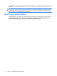 Az érintőtáblán lévő függőleges görgető terület használatához húzza végig az ujját felfelé vagy lefelé a vonalon. MEGJEGYZÉS: Ha az érintőtáblát a mutató mozgatására használta, fel kell emelnie az ujját az érintőtábláról, mielőtt a görgető területet használná. Ha az ujját az érintőtábláról a görgető területre húzza, ezzel még nem aktiválja a görgető funkciót. Külső egér csatlakoztatása Számítógépéhez a gép valamelyik USB-portját felhasználva egy külső USB-egeret csatlakoztathat.