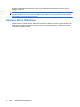 alaspäin käyttämällä kosketusalustan pystysuoraa säätöaluetta ja liikuttamalla sormeasi ylös- tai alaspäin viivojen yli. HUOMAUTUS: Jos käytät kosketusalustaa osoittimen siirtämiseen, sinun täytyy nostaa sormi pois kosketusalustasta ennen kuin siirrät sen säätöalueelle. Pelkkä sormen siirtäminen kosketusalueelta säätöalueelle ei käynnistä vieritystoimintoa. Ulkoisen hiiren liittäminen Tietokoneeseen voi liittää ulkoisen USB-hiiren tietokoneen USB-portin kautta.