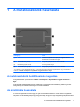 1 A mutatóeszközök használata Részegység Leírás (1) Érintőtábla* A mutató mozgatására és a képernyőn megjelenő elemek kiválasztására és aktiválására szolgál. (2) Az érintőtábla bal gombja* Az egér bal gombjával azonos módon működik. (3) Érintőtábla görgetési zónája Fel- és legördítést végez. (4) Az érintőtábla jobb gombja* Az egér jobb gombjával azonos módon működik. *Ez a táblázat a gyári alapbeállításokat írja le.