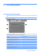 Funzione Tasto di scelta rapida Disattivazione dell'audio dell'altoparlante fn+f9 Riduzione dell'audio dell'altoparlante. fn+f11 Aumento dell'audio dell'altoparlante. fn+f12 Per usare un comando di scelta rapida sulla tastiera del computer, attenersi a una delle seguenti procedure: ● Premere brevemente il tasto fn e quindi il secondo tasto del comando di scelta rapida.