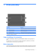 Funksjon Direktetast Dempe lyden fn+f9 Redusere lydvolumet fn+f11 Øke lydvolumet fn+f12 Gjør ett av følgende hvis du vil bruke en direktetastkommando på tastaturet: ● Trykk raskt på fn-tasten og deretter raskt på den andre tasten i kommandoen. – eller – ● Trykk på og hold inne fn-tasten og trykk raskt på den andre tasten i kommandoen. Deretter slipper du begge tastene samtidig.