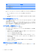 機能 ホットキー スピーカーの音を消す(ミュート) fn + f9 スピーカーの音量を下げる fn + f11 スピーカーの音量を上げる fn + f12 ホットキー コマンドをコンピューターのキーボードで使用するには、以下のどちらかの操作を行いま す。 ● 短く fn キーを押してから、ホットキー コマンドの 2 番目のキーを短く押します。 または ● fn キーを押しながらホットキー コマンドの 2 番目のキーを短く押した後、両方のキーを同時に 離します。 システム情報を表示する(fn + esc) fn + esc を押すと、システムのハードウェア コンポーネントおよびシステム BIOS のバージョン番号 に関する情報が表示されます。 Windows では、fn + esc を押すと、システム BIOS(基本入出力システム)のバージョンが BIOS の 日付として表示されます。一部の機種では、BIOS の日付は 10 進数形式で表示されます。BIOS の日 付はシステム ROM のバージョン番号と呼ばれることもあります。 [ヘルプとサポート]を表示する(fn + f1) [ヘル
