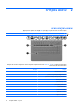 פונקציה מקש חם להחלשת עוצמת הרמקול. fn+f11 להגברת עוצמת הרמקול. fn+f12 על מנת להשתמש בפקודת מקש חם במקלדת המחשב ,פעל בהתאם לאחד מהשלבים הבאים: ● לחץ לחיצה קצרה על מקש ,fnולאחר מכן לחץ לחיצה קצרה על המקש השני של פקודת המקש החם. -לחלופין - ● לחץ באריכות על מקש ,fnלחץ לחיצה קצרה על המקש השני של פקודת המקש החם ולאחר מכן שחרר את שני המקשים בו-זמנית.