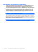 El ícono del estado de la red no aparece Si el ícono del estado de la red no aparece en el área de notificación después de que configura la WLAN, el controlador del software no está o está dañado. También puede aparecer un mensaje de error de Windows que dice “No se encontró el dispositivo”. Se debe reinstalar el controlador. Para obtener la última versión del software del dispositivo WLAN para su equipo, siga estos pasos: 1. Abra su navegador de Internet y vaya a http://www.hp.com/support. 2.