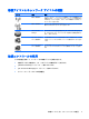無線アイコンとネットワーク アイコンの確認 アイコン 名前 説明 無線(接続済み) コンピュータのハードウェアとしての無線ランプおよび無線ボタンの 位置を示します。ソフトウェアとしては、コンピュータ上の[Wireless Assistant]ソフトウェアを示し、また 1 つ以上の無線デバイスがオンに なっていることを表します 無線(切断済み) コンピュータ上の[Wireless Assistant]ソフトウェアおよびすべての無 線デバイスがオフになっていることを示します HP Connection Manager [HP Connection Manager]を開きます。[HP Connection Manager]で は、HP モバイル ブロードバンド デバイスを使用した接続を作成でき ます(一部モデルのみ) ネットワーク ステー タス(接続済み) 1 つ以上のネットワーク ドライバがインストールされていて、1 つ以 上のネットワーク デバイスがネットワークに接続されていることを示 します ネットワーク ステー タス(切断済み) 1 つ以上のネットワーク ドライバがインストールされて