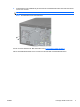 Ändra från minitower till bordsmodell 1. Ta bort/koppla bort alla säkerhetsanordningar som förhindrar att datorn öppnas. 2. Ta bort alla flyttbara medier, t.ex. CD-skivor och USB-flashenheter, från datorn. 3. Stäng av datorn på rätt sätt via operativsystemet. Stäng därefter av eventuell kringutrustning. 4. Ta ut nätsladden ur vägguttaget och koppla loss all kringutrustning. VIKTIGT: Om datorn är ansluten till nätspänning är moderkortet alltid strömförande, oavsett om datorn är på eller avstängd.