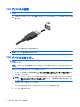 USB デバイスの接続 注意: USB コネクタの損傷を防ぐため、USB デバイスを接続するときは無理な力を加えないでく ださい。 ▲ USB デバイスをコンピュータに接続するには、デバイスの USB ケーブルを USB コネクタに接 続します。 デバイスが検出されると音が鳴ります。 注記: USB デバイスを初めて接続した場合は、デバイスがコンピュータによって認識されたことを 示すメッセージが通知領域に表示されます。 USB デバイスの取り外し 注意: データの損失やシステムの応答停止を防ぐため、以下の操作を行って USB デバイスを安全 に取り外します。 注意: USB コネクタの損傷を防ぐため、USB デバイスの取り外し時にケーブルを引っ張らないで ください。 USB デバイスを取り外すには、以下の操作を行います。 1.