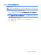 eSATA デバイスの取り外し 注意: データの損失やシステムの応答停止を防ぐため、以下の操作を行って eSATA デバイスを安 全に取り外します。 注意: eSATA コネクタの損傷を防ぐため、eSATA デバイスの取り外し時にケーブルを引っ張らな いでください。 eSATA デバイスを取り外すには、以下の操作を行います。 1. タスクバーの右端にある通知領域の[ハードウェアを安全に取り外してメディアを取り出す]アイ コンをクリックします。 注記: タスクバーに[ハードウェアを安全に取り外してメディアを取り出す]アイコンを表示す るには、[隠れているインジケーターを表示します]アイコン(通知領域の左側にある矢印)をク リックします。 2. 一覧からデバイス名をクリックします。 デバイスを安全に取り外すことができるというメッセージが表示されます。 3.