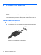 Connecting a 1394 device CAUTION: To prevent damage to a 1394 port connector, use minimal force when connecting a 1394 device. ▲ To connect a 1394 device to the computer, connect the 1394 cable for the device to the 1394 port. You will hear a sound when the device has been detected. Stopping and removing a 1394 device CAUTION: To prevent loss of information or an unresponsive system, stop the 1394 device before removing it.