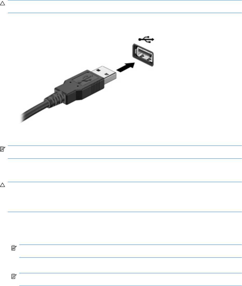 OBS! Första gången du ansluter en USB-enhet visas ett meddelande i meddelandefältet, som talar