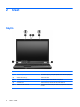 Sisällysluettelo 1 Laitteiden tunnistaminen 2 Osat Näyttö ................................................................................................................................................... 2 Päällä olevat osat ................................................................................................................................. 3 Osoitinlaitteet ....................................................................................................................... 3 Merkkivalot ..