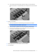 13. Stram skruen på dekslet over minnemodulbrønnen (3). 14. Sett på plass batteriet. 15. Snu datamaskinen slik at høyre side vender opp, og koble til igjen ekstern strøm og eksterne enheter. 16. Slå på maskinen.