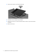 Добавление или замена модулей памяти Отсек для модулей памяти находится снизу компьютера. Объем памяти компьютера можно увеличить за счет установки модуля памяти в свободном гнезде или замены существующего модуля в основном гнезде. ВНИМАНИЕ! Во избежание поражения электрическим током и повреждения оборудования перед установкой модуля памяти отключите кабель питания и извлеките из компьютера все батареи. ПРЕДУПРЕЖДЕНИЕ: Электростатический разряд может повредить электронные компоненты.