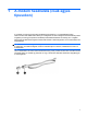 Modemkábel csatlakoztatása FIGYELEM! Az áramütés, a tűz és a meghibásodás veszélyének elkerülése érdekében ne csatlakoztassa a (csak egyes típusokhoz mellékelt) modem- vagy a telefonkábelt az RJ-45 típusú (adathálózati) csatlakozóhoz. A modemkábel csatlakoztatása: 2 1. Csatlakoztassa a modemkábelt a számítógépen lévő modemcsatlakozóhoz (1). 2. Csatlakoztassa a modemkábel másik végét egy RJ-11 típusú fali telefonaljzatba (2). 1.