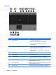 Toetsen OPMERKING: Uw computer kan er iets anders uitzien dan de in dit gedeelte afgebeelde computer. 8 Onderdeel Beschrijving (1) esc-toets Druk op deze toets in combinatie met de fn-toets om systeeminformatie weer te geven. (2) fn-toets Druk op deze toets in combinatie met een functietoets of de esctoets om veelgebruikte systeemfuncties uit te voeren. (3) Windows-logotoets Hiermee geeft u het menu Start van Windows weer.