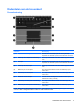 Onderdelen aan de rechterkant 12 Onderdeel Beschrijving (1) eSATA-poort Hierop sluit u hoogwaardige eSATA-componenten aan, zoals een externe eSATA-schijfeenheid. (2) USB-poorten (3) Hierop sluit u optionele USB-apparatuur aan. (3) Upgraderuimte Hierin kunt u een optische-schijfeenheid of een vaste schijf plaatsen. (4) RJ-45-netwerkconnector Hierop kunt u een netwerkkabel aansluiten. (5) RJ-11-connector (modem) Hierop kunt u een modemkabel aansluiten.