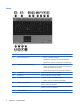 Conteúdo 1 Identificar hardware 2 Componentes Ecrã ...................................................................................................................................................... 2 Componentes da parte superior ........................................................................................................... 3 Dispositivos apontadores ..................................................................................................... 3 Luzes ................................