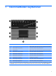 1 Osoitinlaitteiden käyttäminen Kohde Kuvaus (1) Paikannustappi* Siirtää osoitinta sekä valitsee ja aktivoi näytössä olevia kohteita. (2) Paikannustapin vasen painike* Toimii kuten ulkoisen hiiren ykköspainike. (3) Kosketusalusta* Siirtää osoitinta sekä valitsee ja aktivoi näytössä olevia kohteita. (4) Kosketusalustan vasen painike* Toimii kuten ulkoisen hiiren ykköspainike. (5) Kosketusalustan keskipainike* Toimii kuten ulkoisen hiiren keskipainike.