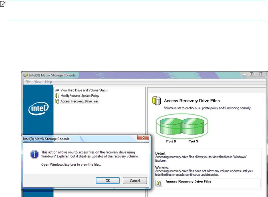 1. Vyberte položku Access Recovery Drive Files (Prístup k súborom na obnovovacej jednotke) na