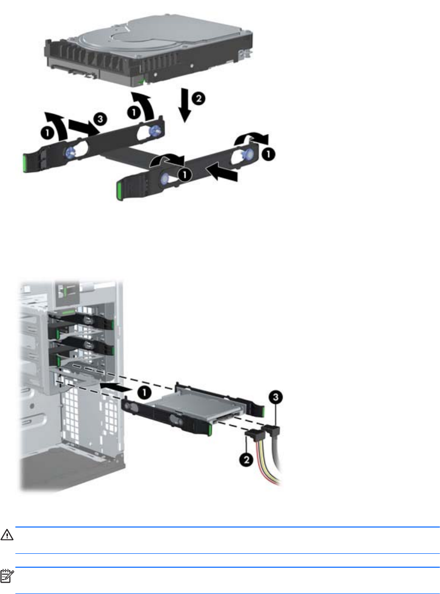 4. Attach a power cable (2) and a data cable (3) to the hard disk drive.