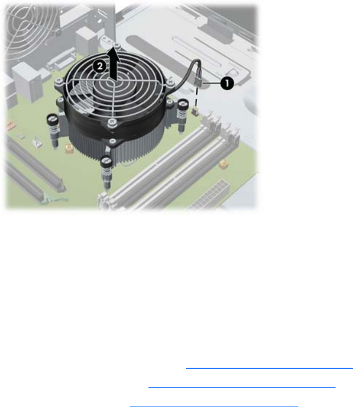 5. Disconnect the CPU heatsink fan cable from the system board (1) as shown in the following figure.