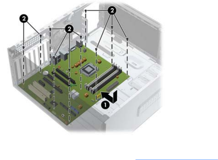 in the chassis (2). You may have to slide the system board toward the rear of the chassis.