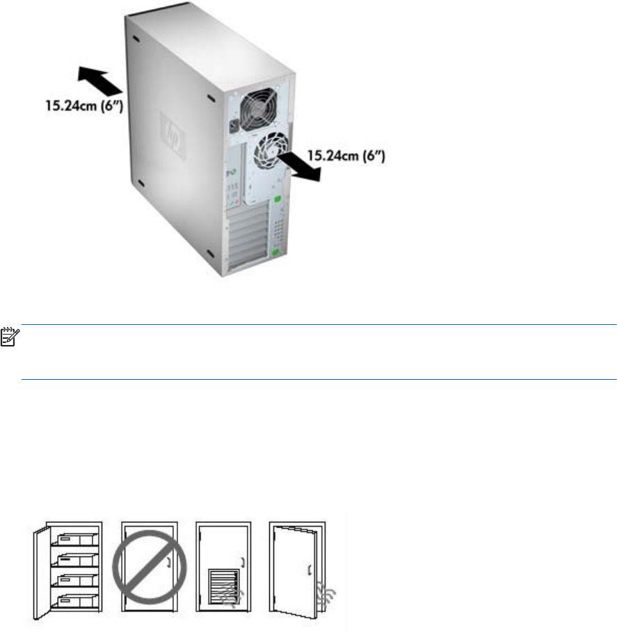 Place the workstation in an area with adequate ventilation. Provide at least 15.24 cm (6 inches) of