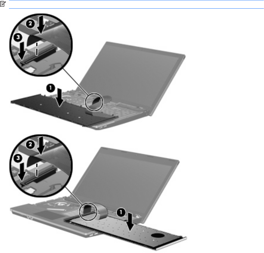 7. Umetnite kabel tipkovnice (2) u ZIF utikač (3) na sistemskoj ploči pa zabravite utikač.