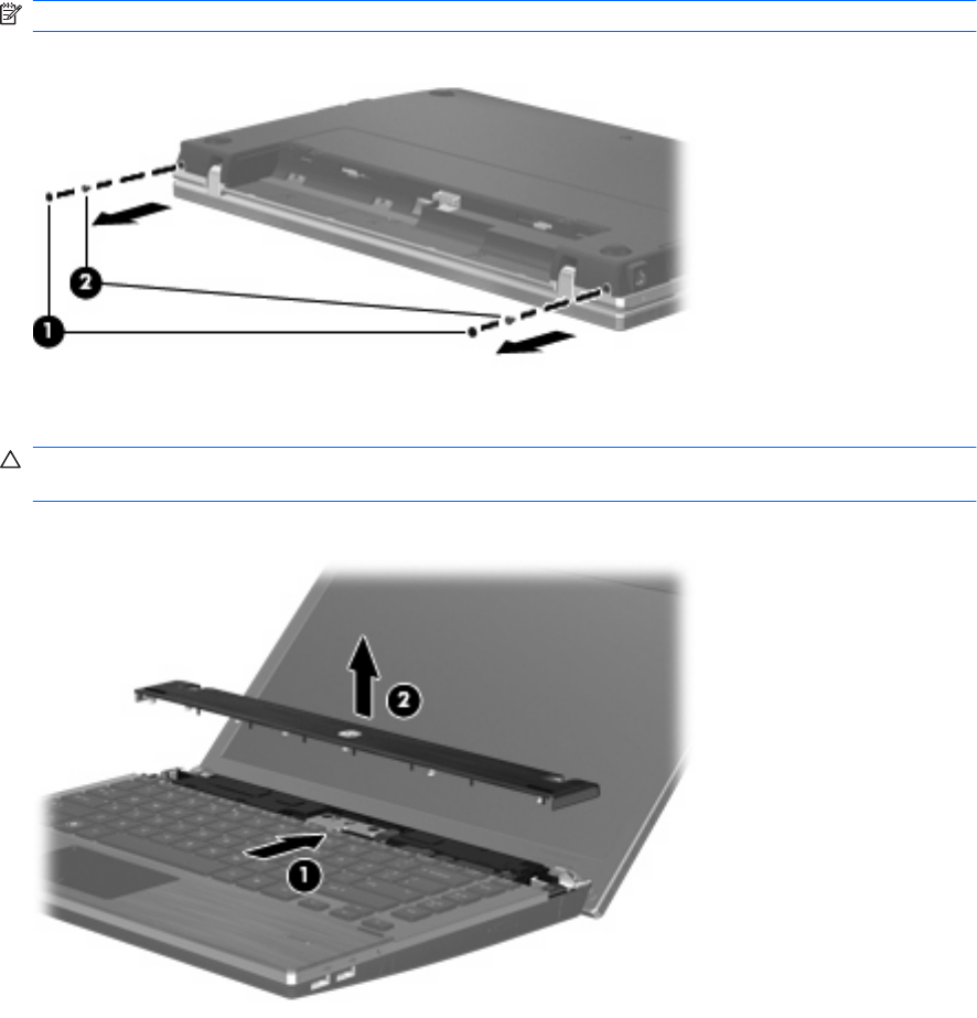 8. Skinite 2 pokrova vijka (1) i vijke (2) sa stražnjeg ruba računala.