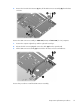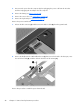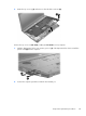 Release the ZIF connector (1) and disconnect the ribbon cable (2) from the system board.