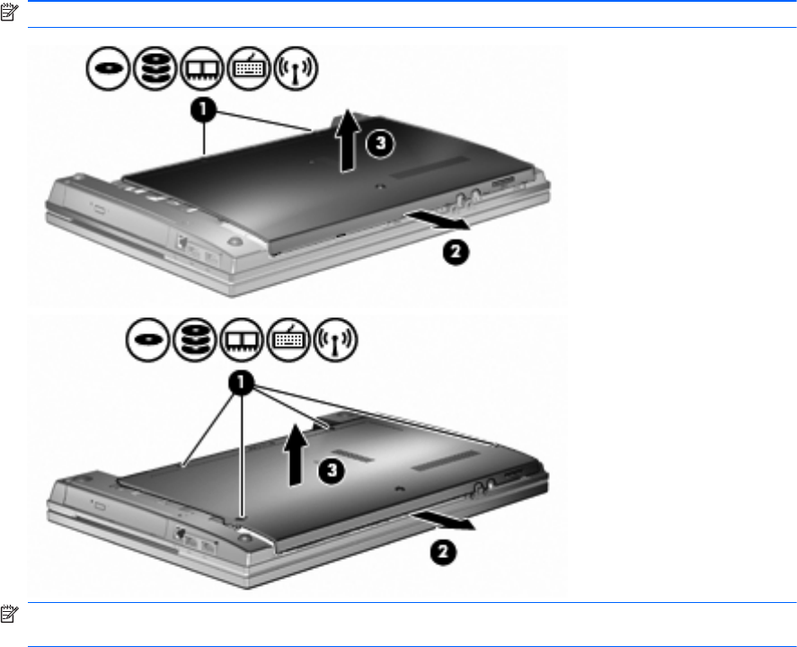 8. Gurnite napred donja vratanca (2), a zatim ih podignite (3) i odvojite od računara.