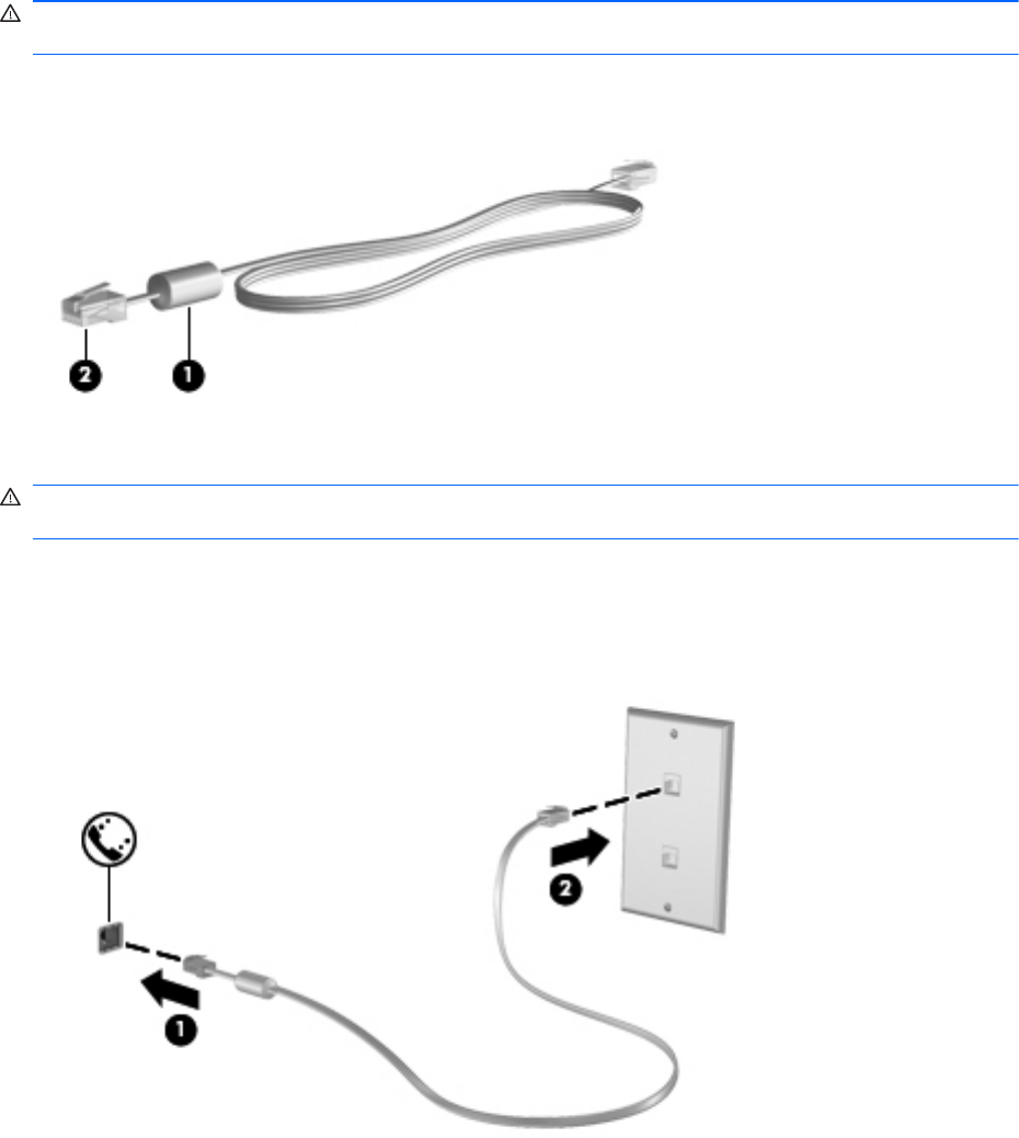2. Uključite modemski kabl u RJ-11 telefonski zidni utikač (2).