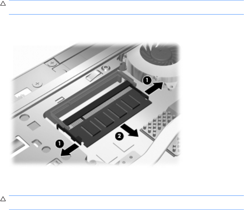 a. Trekk vekk festeklipsene (1) på hver side av minnemodulen.