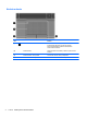 Kosketusalusta Osa 4 Kuvaus (1) Kosketusalustan sammutuksen ilmaisin Ottaa kosketusalustan käyttöön ja sammuttaa sen. Ota kosketusalusta käyttöön tai poista se käytöstä kaksoisnapauttamalla nopeasti kosketusalustan sammutuksen ilmaisinta. (2) Kosketusalusta Siirtää osoitinta sekä valitsee ja aktivoi näytössä olevia kohteita. (3) Kosketusalustan vasen painike Toimii kuten ulkoisen hiiren ykköspainike. (4) Kosketusalustan oikea painike Toimii kuten ulkoisen hiiren kakkospainike.