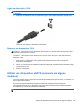 CUIDADO: Para reduzir o risco de danos num conector USB, não puxe o cabo para remover o