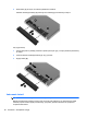 2. Przesuń zatrzaski zwalniające baterii (1), aby ją zwolnić.