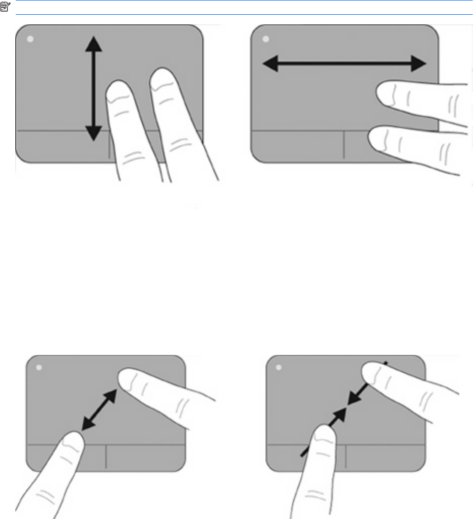 互いに少し離した状態でタッチパッド上に置いて、それらの指をタッチパッド上で上下左右に動かし