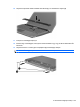 8. Helyezze a billentyűzetet (1) lefordítva a mélyedésbe, majd csúsztassa a billentyűzetet (2) a