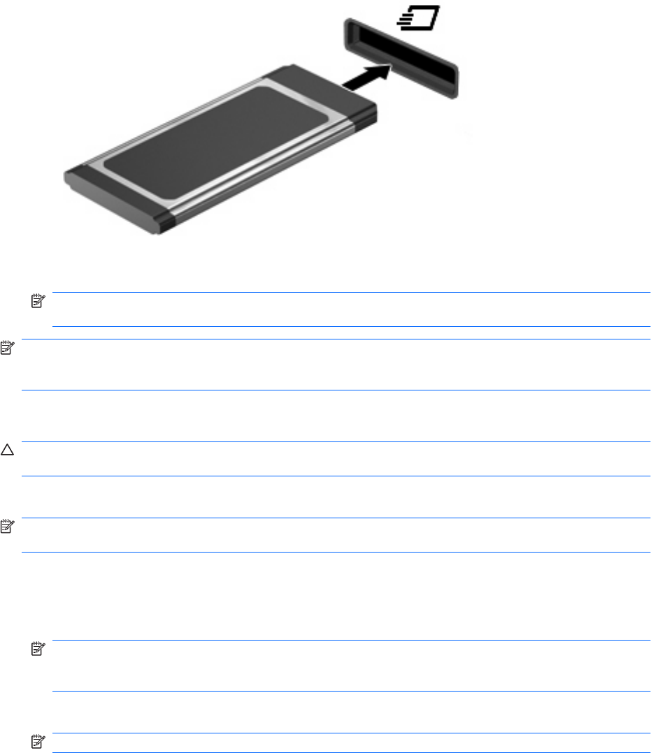 2. Helyezze a kártyát az ExpressCard bővítőhelybe, majd nyomja be a kártyát, amíg biztosan a
