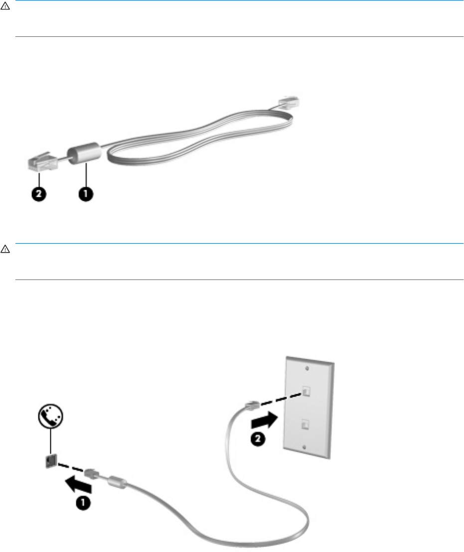 2. Dugja a modemkábel másik végét egy RJ-11 típusú fali telefonaljzatba (2).