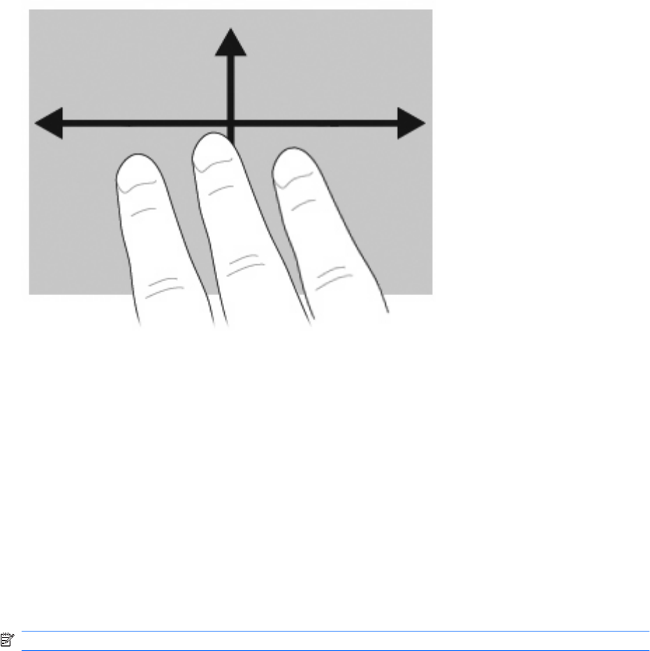 Helyezze három ujját az érintőtáblára, egymástól kis távolságra. Írjon le tollvonás mozdulatot az