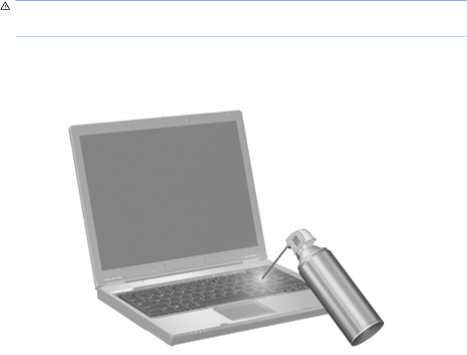 Egy fúvócsővel felszerelt sűrített levegős flakon segítségével fellazíthatja és eltávolíthatja a billentyűk