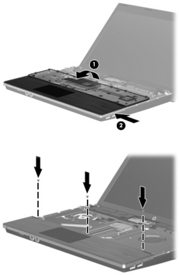 6. Umístěte klávesnici spodní stranou vzhůru na opěrku pro ruce počítače (1).