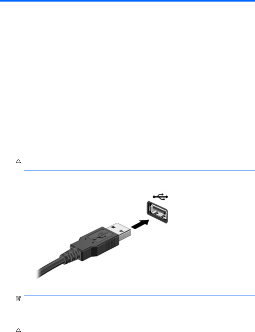 UPOZORNĚNÍ: Aby nedošlo k poškození konektorů USB, nepoužívejte při připojování zařízení USB