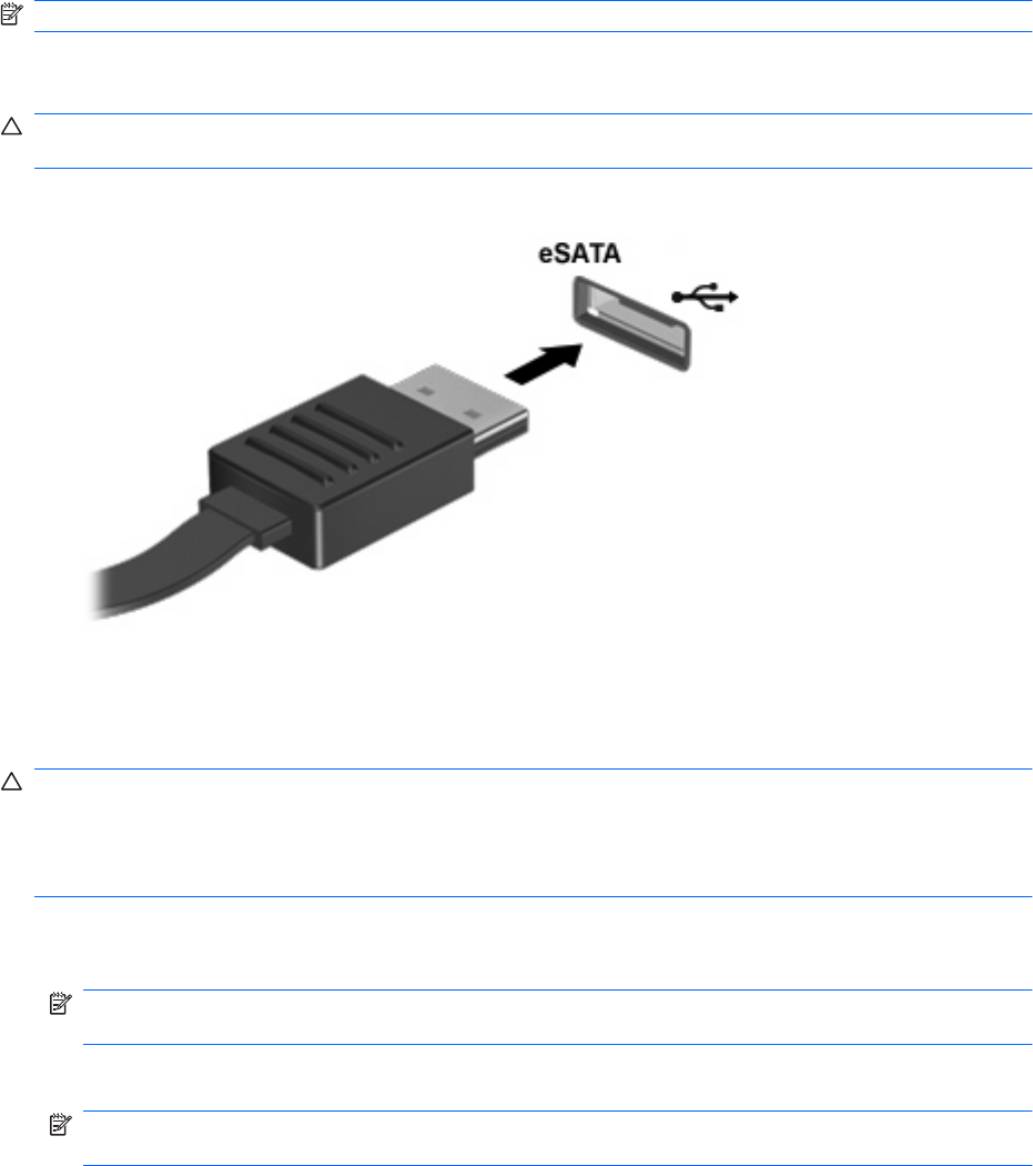Chcete-li připojit zařízení eSATA k počítači, připojte kabel eSATA pro zařízení k portu eSATA.