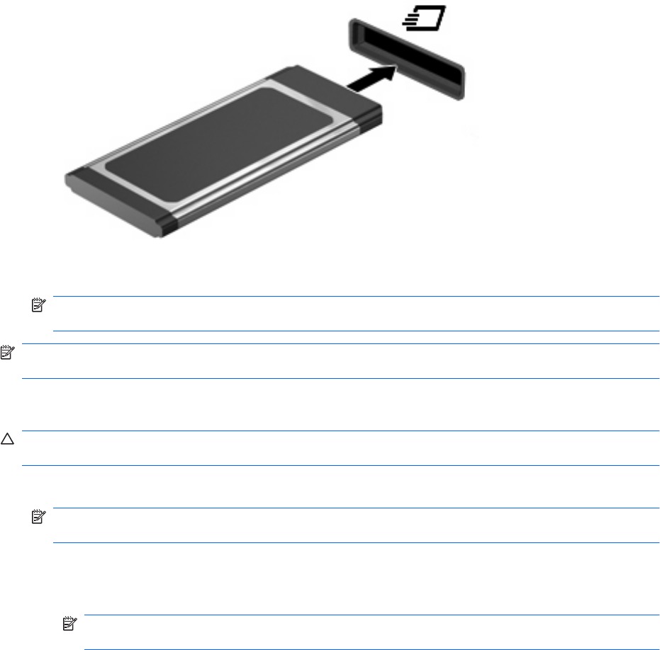 POZNÁMKA: Při prvním vložení karty ExpressCard se zobrazí zpráva v oznamovací oblasti,